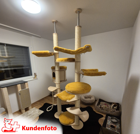 Tipp: Unsere Deckenspanner-Kratzbäume sind dank unserer absolut einzigartigen Konstruktion standfest, kippsicher, einfach nachzuziehen und somit sicher.